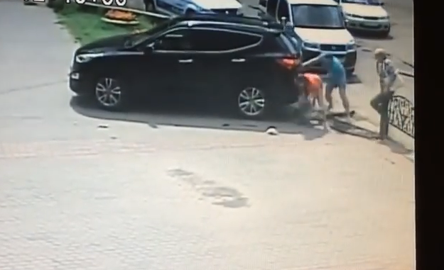 وتظهر اللقطات التي لم يُفصح عن مكانها، تعدي والد الطفل على سائق السيارة بالضرب بعد أن اطمأن على طفله الذي لم يصب بأي مكروه.