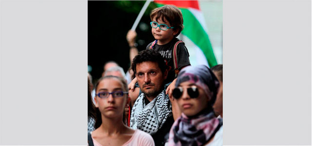 تظاهرة في فالنسيا الإسبانية ضد مجازر إسرائيل في غزة. رويترز