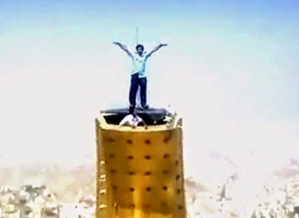 تداولت مواقع تواصل اجتماعي مقطع فيديو يظهر شاباً يقف على إحدى حواف هلال ساعة مكة، والتي تعتبر أكبر ساعة في العالم، حيث تبعد عن سطح الأرض بأكثر من 1900 قدم.