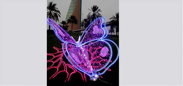 تتلون دبي، مدينة المهرجانات، في كل عام بطيف واسع من الأضواء الرائعة والألوان الزاهية والتصاميم الفنية، احتفالاً بحدث «مفاجآت صيف دبي»، الحدث الصيفي الأهم في المنطقة، الذي تنظمه مؤسسة دبي للمهرجانات والتجزئة في نسخته الـ17. وتشمل الزينة والتصاميم الفنية التي انتشرت في أنحاء عدة من دبي أشكالاً فنية بشرائط الإضاءة مثل الأزهار والفراشات، التي جذبت انتباه جميع زوار وسكان دبي بألوانها الزاهية والمذهلة، لتكون في استقبال الضيوف القادمين إلى دبي، لقضاء أمتع الأوقات بصحبة توليفة من الفعاليات التي تتناسب مع جميع الثقافات والأعمار، وتلبي كل تطلعات زائري دبي خلال الصيف.