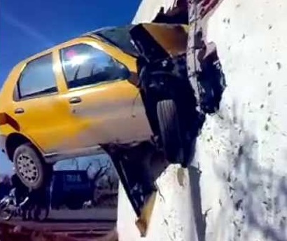 تداولت مواقع تواصل اجتماعي مقطع فيديو يظهر مركبة صفراء اللون، ما يوحى أنها ربما تكون سيارة أجرة، وقد ارتطمت بجدار واخترقته لتظل عالقة به بشكل غريب!.