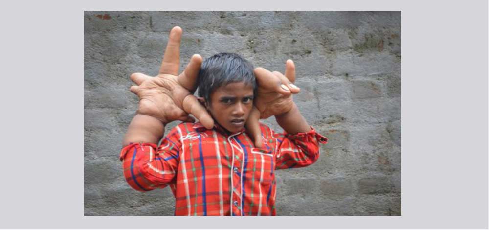 تبدو، حالة الطفل الهندي ( كليم)، البالغ من العمر(8 سنوات)، حالة غريبة ومحيرة للغاية، وهي المرة الأولى التي تصادف الأطباء، وجود صبي بيدين تعودان لعملاق.