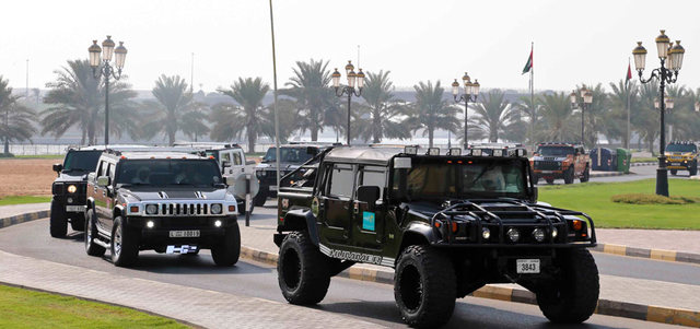 على وقع هدير محركات سيارات «همر» المعدلة، ونغماتها التي تعتبر الأعلى في فئتها، احتفل المنتزه، الوجهة الترفيهية والمائية الأحدث في إمارة الشارقة، يوم الجمعة، بختام الفعاليات الصيفية التي أقامها خلال فترة الإجازة الدراسية، بتنظيم استعراض لمجموعة من هذه السيارات بالتعاون مع «فريق همر الإمارات». وجابت 15 سيارة «همر» كورنيش البحيرة، انطلاقاً من السوق المركزي في الشارقة مروراً بواجهة المجاز المائية، قبل أن تصل إلى وجهتها في المنتزه، حيث استمتع الزوار، من العائلات والأفراد، بالسيارات التي تم تعديل محركاتها، وتغيير ألوان بعضها وتزيينها بالرسومات والأشكال، وهو ما أدخل المرح إلى نفوس الزوار من مختلف المراحل العمرية، الذين تسابقوا لالتقاط الصور التذكارية بجوار السيارات والاستمتاع بتجربة الوقوف خلف مقود إحدى أكثر السيارات الرياضية شهرة في العالم.