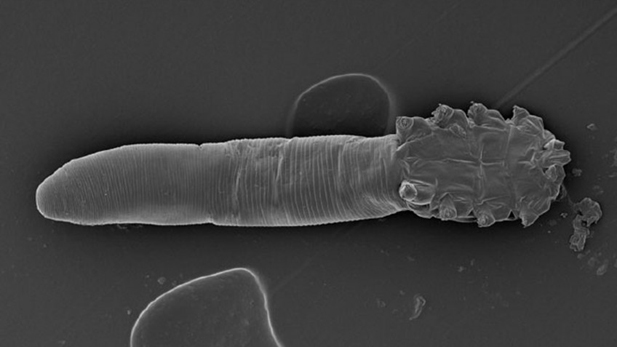 ويظهر في المقطع مخلوق غير واضح، كما أنه من غير المؤكد أنه نفس المخلوق الذي أشارت إليه الدراسة، خاصة وأن الباحثة أكدت أن المخلوق أصغر من أن يرى بالعين المجردة، وتحتاج لمجاهر مختصة حتى تُشاهد.