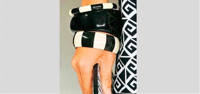 وأوضحت «إيلي»، أن الأساور الضخمة تزدان بأحجار الستراس والحليات المعدنية والريش، وتتلألأ بالألوان الزاهية والصارخة، مؤكدة أن كل شيء مسموح به هذا العام، حيث يمكن للمرأة المزج بين الأشكال والألوان المختلفة كيفما تشاء.