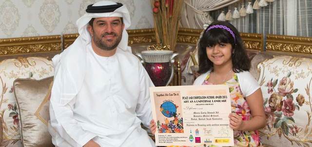 نالت الطفلة المواطنة ميرة طارق أحمد (10 سنوات)، شهادة دبلوم في «مسابقة الفن لغة عالمية.. إبداع من أجل السلام»، التي نظمت في المكسيك، لتكون بذلك العربية الوحيدة التي تحصد هذا التكريم. وشاركت ميرة بمجموعة منوعة من اللوحات في المسابقة العالمية، ونجحت بفضل تميز أفكارها في نيل هذه الشهادة، التي تتوج بها ولعها الشديد بالرسم، وارتباطها الكبير به منذ الصغر، الأمر الذي أثنت عليه أسرتها، وقدمت لها الدعم الكبير.