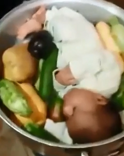 بالفيديو.. يطهو رضيعه في "قدر طبخ"!