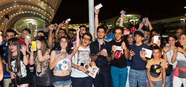 غاغا التي حطت طائرتها في المبنى رقم 1 بمطار دبي الدولي، وأقلتها سيارة من أجل الوصول إلى قاعة «المجلس» في المبنى رقم 3 من أجل الإطلالة الإعلامية، تجاوبت كثيراً مع المعجبين الذين انتظروها خارج المطار، حاملين لافتات يعبرون فيها عن حبهم الشديد لها، وترحيبهم بها في الإمارات، واللافت أن بعض هذه اللافتات كانت بالعربية.