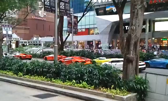 وعلى ما يبدو من المقطع أن هذا العدد الهائل لسيارات اللامبرغيني تواجد في هذا الشارع بغرض الاستعراض.