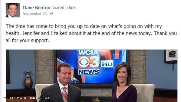 وقال ديف بينتون، إنه مصاب بسرطان الدماغ، وأن الأطباء أبلغوه بأنه تبقى له 6 شهور فقط. وأضاف "تبين لي قبل بضعة أسابيع أن سرطان الدماغ عاد مرة أخرى، ولكنني علمت أكثر بشأن ما يخفيه المستقبل.. هذا الورم أكبر من أن يتم استئصاله بعملية جراحية أو بالإشعاع"وتابع: "قال الأطباء إنه تبقى لي ما بين 4 إلى 6 شهور قبل أن يسوء الوضع أكثر.. ولكنني سأواصل عملي وأتابع معكم الأخبار طالما أنا قادر على ذلك".