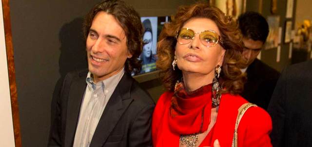 صوفي لوين وابنهاكارلو بوينتو في احد المعارض التي توثق سيرتها الفنية. اب