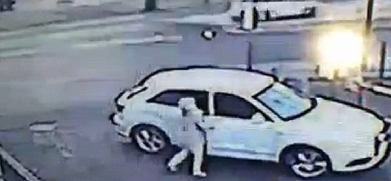 تركت سيدة بريطانية، سيارتها تعمل للحظات، وترجلت كي تزيل حاجزاً اعترض طريقها، بالقرب من مكان عملها بمنطقة أولدهام (مانشستر الكبرى)، وفي هذه الأثناء دخل لص إلى سيارتها في محاولة لسرقتها تحت أنظار السيدة المذهولة من شدة الصدمة.