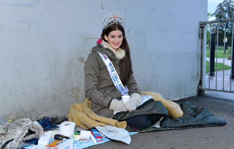 قامت ملكة جمال انجلترا كارينا تيريل، بالنوم ليلة بأكملها في الشارع للتوعية بمشكلة التشرد.