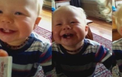 بالفيديو.. طفل يقهقه بصورة هستيرية لمجرد سماع سعال والده