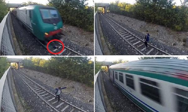 نشرت صحيفة " الديلي ميل" البريطانية فيديو لمراهق إيطالي قام بالنوم على خط السكة الحديدية، في الوقت الذي يمر فيه أحد القطارات فائقة السرعة.