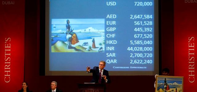 حصد مزاد دار كريستيز في فندق أبراج الإمارات بدبي، أخيراً، نحو 46 مليون درهم، إذ بيعت 107 لوحات من أصل 122 عملاً، وتعد الحصيلة هي الأعلى منذ عام 2010. وحققت لوحة الفنان المصري الراحل محمود سعيد «فلاحة في العلمين» السعر الأعلى، بعد أن بيعت بثلاثة ملايين و191 ألف درهم؛ لتكون صاحبة السعر الأعلى، و«نجمة» المزاد التي تفوقت على لوحة «الزعيم وتأميم القناة» التي حلت في المركز الثالث.