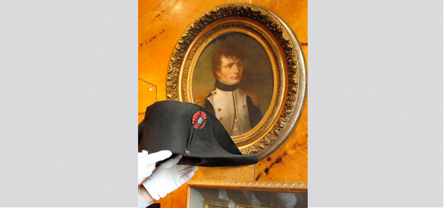 تُعرض قبعة شهيرة يعتقد أنها كانت تخص الإمبراطور الفرنسي نابليون بونابرت، للبيع، في مزاد بفونتنبلو في ما يطلق عليه «مزاد القرن» لمحبي الزعيم الأسطوري. وستعرض دار أوسينات نحو 1000 غرض للبيع في 15 و16 نوفمبر المقبل، أهمها القبعة الشهيرة التي قيل إن نابليون كان يرتديها خلال معركة مارينغو في إيطاليا عام 1800. وتقدر قيمة القبعة بما بين 300 و400 ألف يورو (نحو 380 ألفاً و506 آلاف دولار).