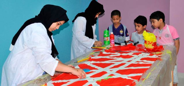 ورش مراكز الطفل تهدف إلى تنمية المهارات الفنية التفاعلية وتطوير مهارات الأطفال وتحفيزهم على الإبداع. من المصدر