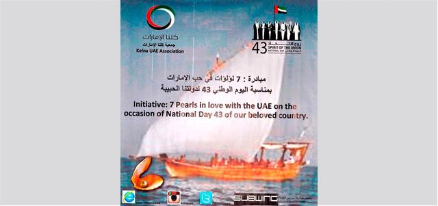 أطلقت جمعية «كلنا الإمارات» مبادرة وطنية، تحت عنوان «7 لؤلؤات في حب الإمارات»، بمناسبة الاحتفال بيوم العلَم واليوم الوطني الـ43 لدولة الإمارات.