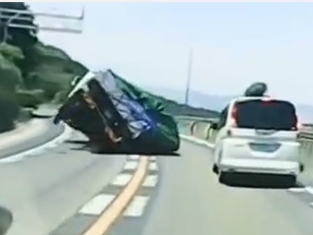وانتشر مقطع فيديو يظهر الشاحنة وهي تنقلب على الطريق، بعد أن اتجهت إلى يمين الطريق؛ بسبب الحمولة الزائدة.