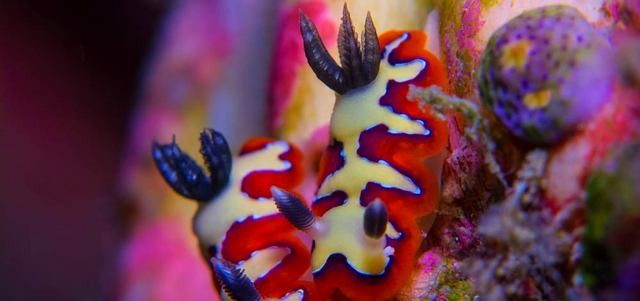 المتعمق في دراسة الحياة البحرية والسلوك البيئي يدرك تماماً مدى أهمية احترام البيئة، واحترام ما تقدمه من توازن بيئي متكامل للكثير من المخلوقات، والتي تعتمد بشكل كبير في حياتها على البحار والمحيطات. صورة لمخلوق «النودي برنش» من منطقة كومودو في إندونيسيا.