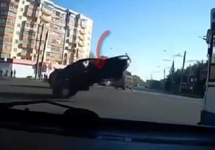 ولم يستطع السائق السيطرة على سيارته التي ارتفعت نحو الأعلى، وانقلبت رأساً على عقب ، مثلما يقال.