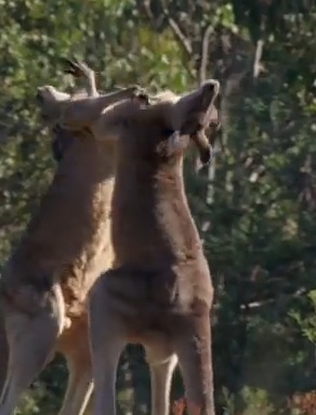 مصارعة من نوع آخر، بين حيوانين، يكشف عنها فيديو طريف، قام بتصويره "ديفيد أتنبورو" مقدم برنامج "Life Story"، الذي يعرض على قناة BBC One، حيث تُظهر لقطات الفيديو، حيواني كنغر، يتلاكمان بالأيدي ويردان الضربات على بعضهما البعض في محاولة لإثبات من الأقوى؟!.