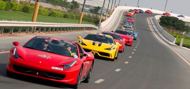 نظّم نادي مالكي سيارات «فيراري» الإمارات موكباً انطلق من فندق ميدان بدبي، شاركت فيه 111 سيارة «فيراري»، وتوجّه إلى أبوظبي، لينضم إليه مالكو سيارات «فيراري» في العاصمة الإماراتية، وانطلق الجميع إلى «حلبة ياس».