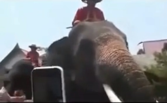إلتهم فيل في إحدى حدائق الحيوان في تايلاند، هاتف من نوع "آي فون"، من بين يدي فتاة، كانت تقدم له طعاماً.