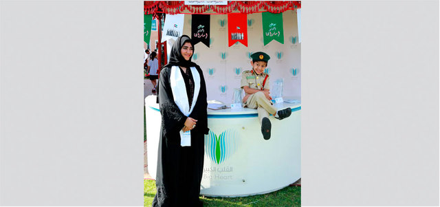 أحد الأطفال التلاميذ خلال فعالية «القلب الكبير»، ضمن احتفالات مدرسة ريبتون في دبي باليوم الوطني الـ43 للإمارات.
