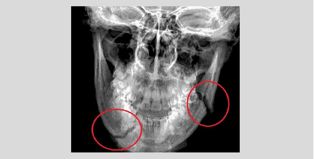الأشعة أظهرت وجود أكثر من كسر في عظام الفك.