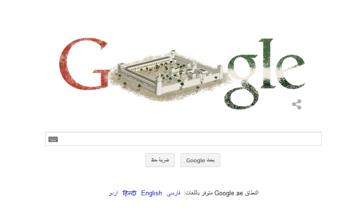 زيّن محرك البحث «غوغل» صفحته الرئيسة، أمس، بصورة «قصر الحصن» في أبوظبي، احتفاء باليوم الوطني الـ43 للدولة.