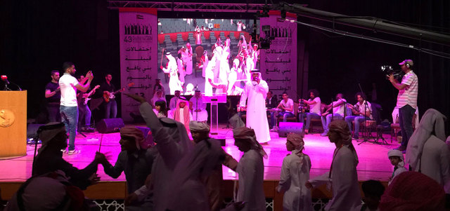 وعلى أنغام الأغنية الوطنية «من يشيه الشمس»، وضمن احتفالات قبيلة بني يافع باليوم الوطني الـ43، وبدعوة خاصة من شيوخ القبيلة وأفرادها، اعتلى العامري خشبة المسرح، ناقلاً تحيته الخاصة لقبيلة بني يافع والحاضرين على دعوة إحياء الحفل، مهنئاً الجميع بذكرى اليوم الوطني للإمارات، متمنياً التقدم والازدهار لحكامها وشيوخها والشعب الإماراتي والمقيمين في ظل الأمن والأمان، داعياً بالرحمة لمؤسس الدولة وبانيها الشيخ زايد بن سلطان آل نهيان.