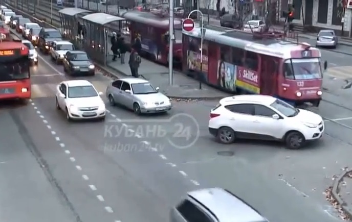 قررت سيدة روسية المرور من أمام الترام في التوقيت الخطأ، بعد أن كانت سيارتها متوقفة عند اشارة المرور.