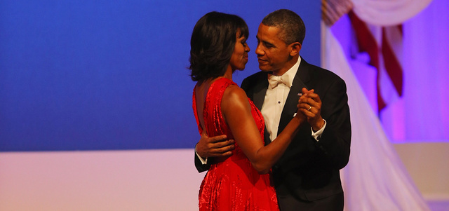 ميشيل أوباما ترقص مع زوجها خلال حفل في البيت الأبيض. غيتي