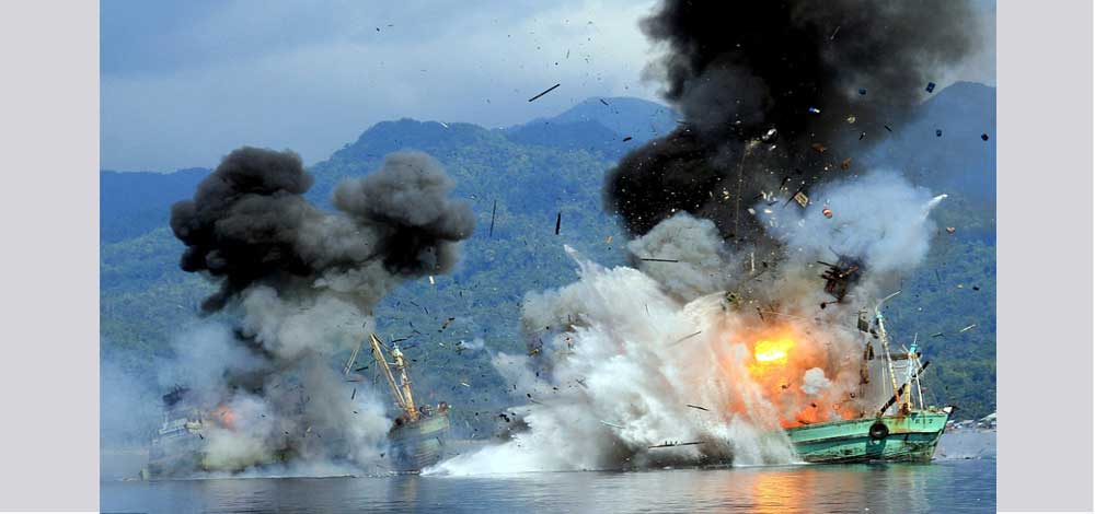 هاجمت البحرية الإندونيسية، مجموعة من القوارب، التي تقوم بأنشطة الصيد غير الشرعية وبطريقة مثيرة، حيث تنفذ أوامر السلطات المحلية، باعتراض أي قارب يمارس الصيد غير الشرعي في المياه الإقليمية التابعة لها.