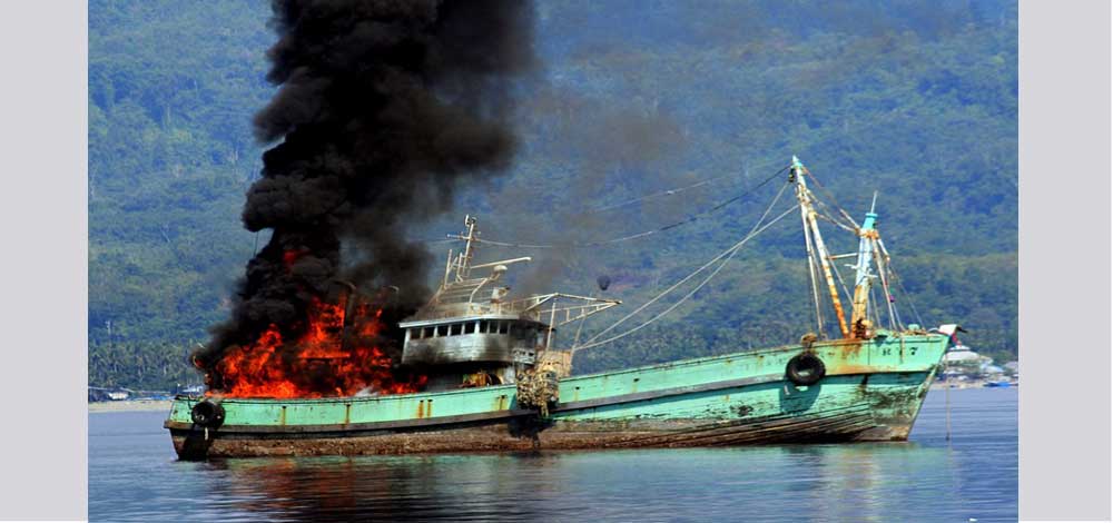 وتنفذ السلطات البحرية الإندونيسية، منذ فترة، قرار الحكومة بإغراق السفن الأجنبية، التي يتم رصدها تقوم بالصيد بصورة "غير قانونية" في المياه الإندونيسية.