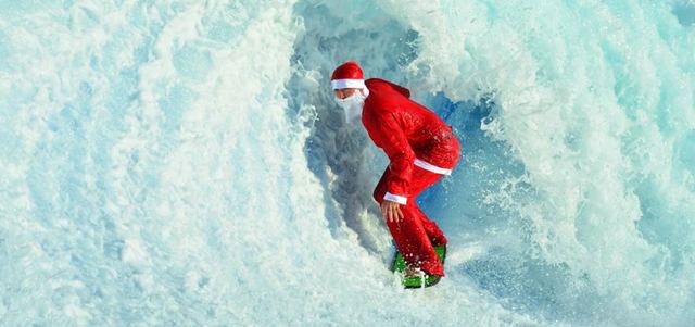 بطل العالم في ركوب الأمواج، كلايتون باركر، في زيّ «بابا نويل»، يتزلج على أضخم حوض للأمواج الاصطناعية في العالم في «ياس ووتروورلد أبوظبي»، تزامناً مع أجواء الأعياد، واستقبال العام الجديد.