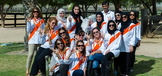 خلال البرنامج التدريبي «مهارات القيادة من منظور الفروسية»، الذي نظمته مؤسسة دبي للمرأة، واختتمت دورته الثانية بمشاركة 45 سيدة، يشغلن مناصب إدارية عليا من القطاعين الحكومي والخاص. ويسعى من خلال التفاعل مع الخيل إلى تطوير الثقة بالنفس ومهارات القيادة.