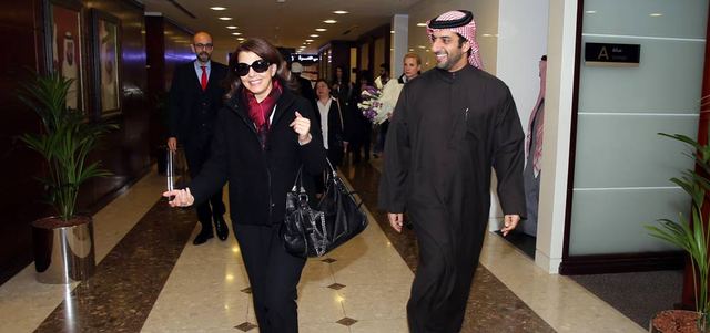 سلطان بن أحمد القاسمي خلال استقبال ماجدة الرومي. من المصدر