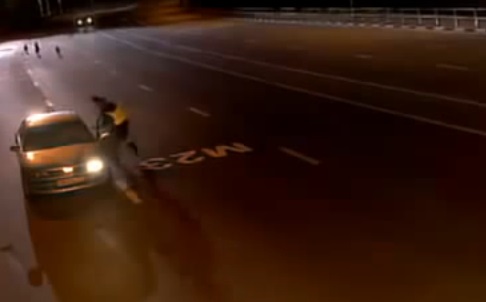 فما كان من الشرطي، إلا أن فتح باب السيارة المخالفة، ليحتمي داخلها من افتراس الذئاب الجائعة.