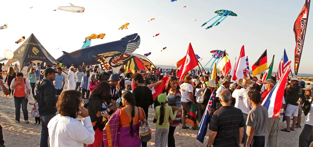 تزينت السماء ضمن المهرجان الذي زاره في اليوم الأول صاحب السمو الشيخ محمد بن راشد آل مكتوم، نائب رئيس الدولة رئيس مجلس الوزراء حاكم دبي، بمجموعة من الطائرات التي تعددت أشكالها، حيث باتت هذه الرياضة الشعبية مفتوحة على الكثير من الفن، لتغمر الحضور بالدهشة من خلال ألوانها وأشكالها الغريبة. وقد جذب المهرجان الذي ضم 25 فريقاً من حول العالم، الكبار والصغار، الذين أتوا حاملين معهم طائراتهم وخيوطهم التي وجهوها بعكس الرياح حتى يتمكنوا من رفعها عالياً، ليستعيدوا من خلال ذلك لحظات الطفولة، وحكايات كانت تنسج مع هذه الهواية. أما في المساء فكانت للطائرات حكاية خاصة مع السماء، حيث غابت الألوان التي عانقت الشمس، لتحل الطائرات المضاءة مكانها، وتتلألأ كالنجوم القريبة بأشكالها وألوانها المتعددة.