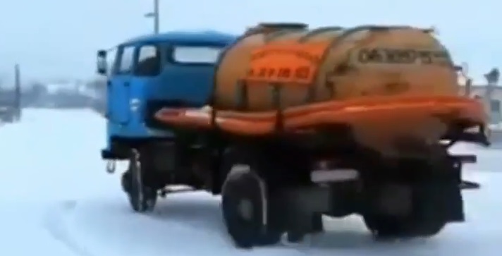 انتشر في مواقع التواصل الاجتماعي، فيديو لسائق روسي يقوم بما يسمى بالتفحيط على الثلج.