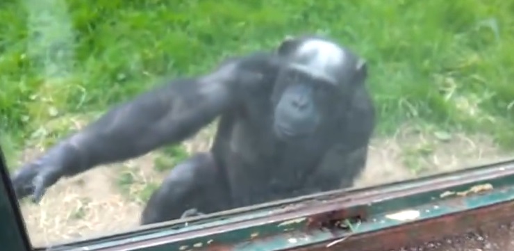 فيديو مؤثر..قرد يشرح لزوار حديقة كيف يفتحوا الباب ليخرج!