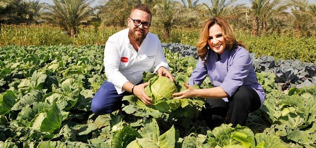وقبل ظهورهما في المهرجان، توجه نجما الطهي إلى مزرعة «الرحبة» التي لا تبعد سوى 30 دقيقة فقط عن مدينة أبوظبي، حيث قاما بجولة في رحاب المزرعة الصغيرة التي يعمل فيها سبعة أشخاص فقط، واختارا باقة من الخضراوات الطازجة المختلفة، مثل الخيار، والباذنجان، والخس الأحمر والأبيض، والفجل، لإعداد أطباقهما في المهرجان. وقال الشيف أورفلي: «إنها مزرعة مذهلة حقاً، ومن الرائع أن نستطيع الحصول على منتجات محلية فائقة الجودة هنا في أبوظبي على بعد مسافة قصيرة من المدينة». ويشارك في المهرجان موكب من الشاحنات الآتية من المملكة المتحدة، إضافة إلى ثلاث علامات تجارية محلية.