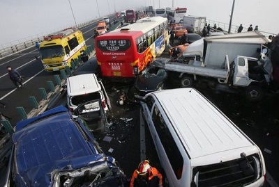 ذكر تقرير إخباري أن شخصين قتلا وأصيب 60 آخرون عندما اصطدمت أكثر من مئة مركبة بسبب الطقس الضبابي قرب سيؤول.