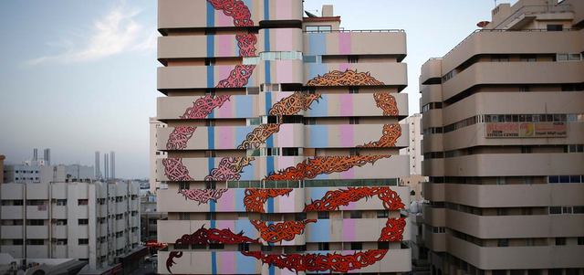 جدارية لفنان تونسي على مبنى في الشارقة