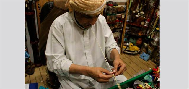 العسيري يتقن تركيب السبح التي أدخلته «غينيس» عام 2007. أرشيفية