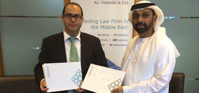 أحمد مجان خلال توقيع الاتفاقية مع «مكتب التميمي» القانوني. من المصدر