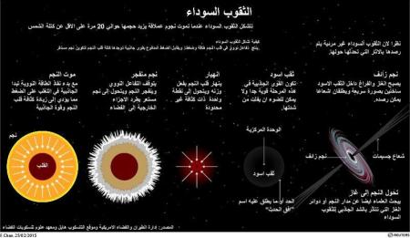 توجد الثقوب السوداء وسط أجرام كونية نائية تسمى النجوم الفلكية (كوازارات). وهذه الثقوب عبارة عن حيز في الفضاء به مادة مكثفة للغاية لا تسمح حتى للضوء بسرعته المطلقة بالنفاد من خلالها وتفادي جاذبيتها. ويجري رصد الثقوب السوداء من خلال الآثار الناجمة عنها على المجرت القريبة والنجوم والغبار الكوني.